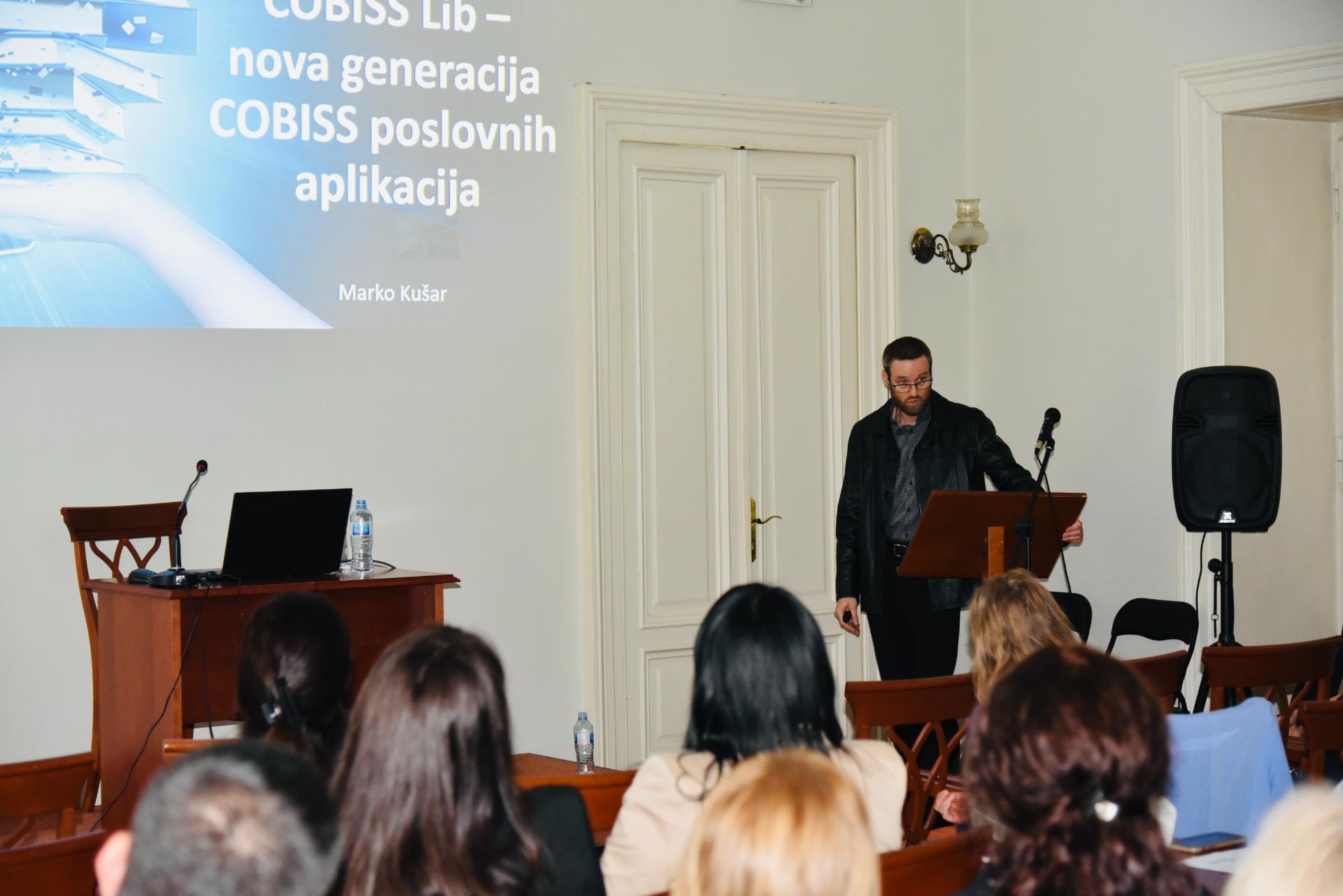The central part of the COBISS day was dedicated to the new web applications COBISS.Cat and COBISS.Lib, which were presented by Branko Kurnjek and Marko Kušar, experts from the Institute of Information Sciences. They brought the work in the mentioned applications closer to the experts in the field of library activity present and clarified their doubts through discussion and answers to their questions.