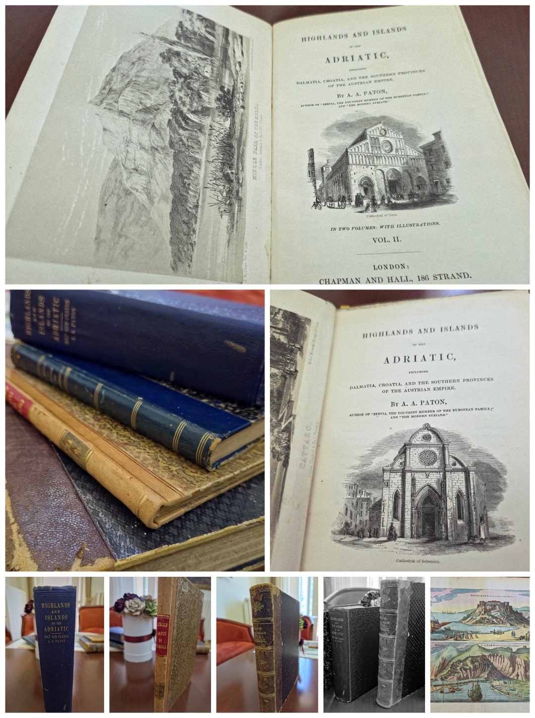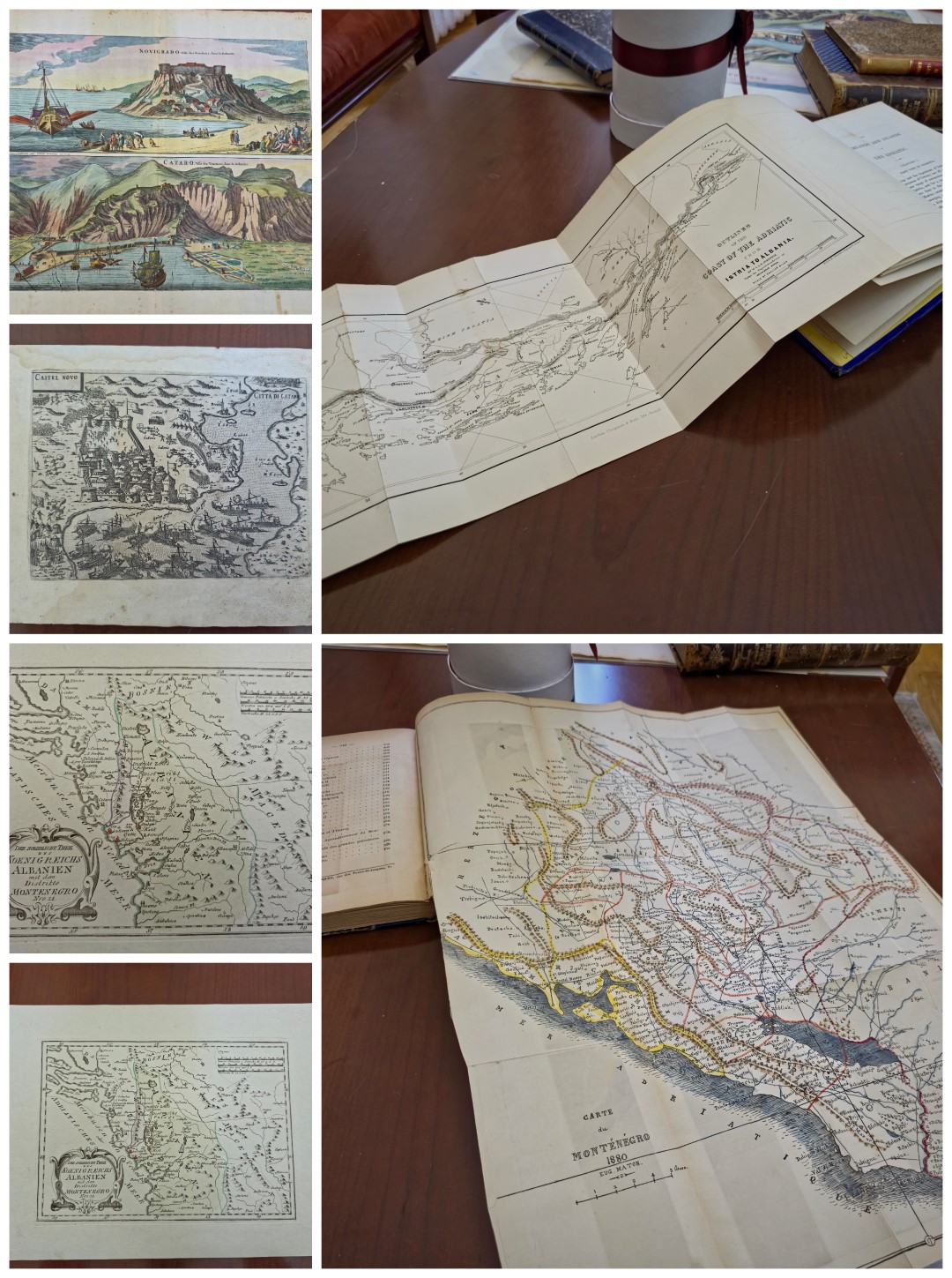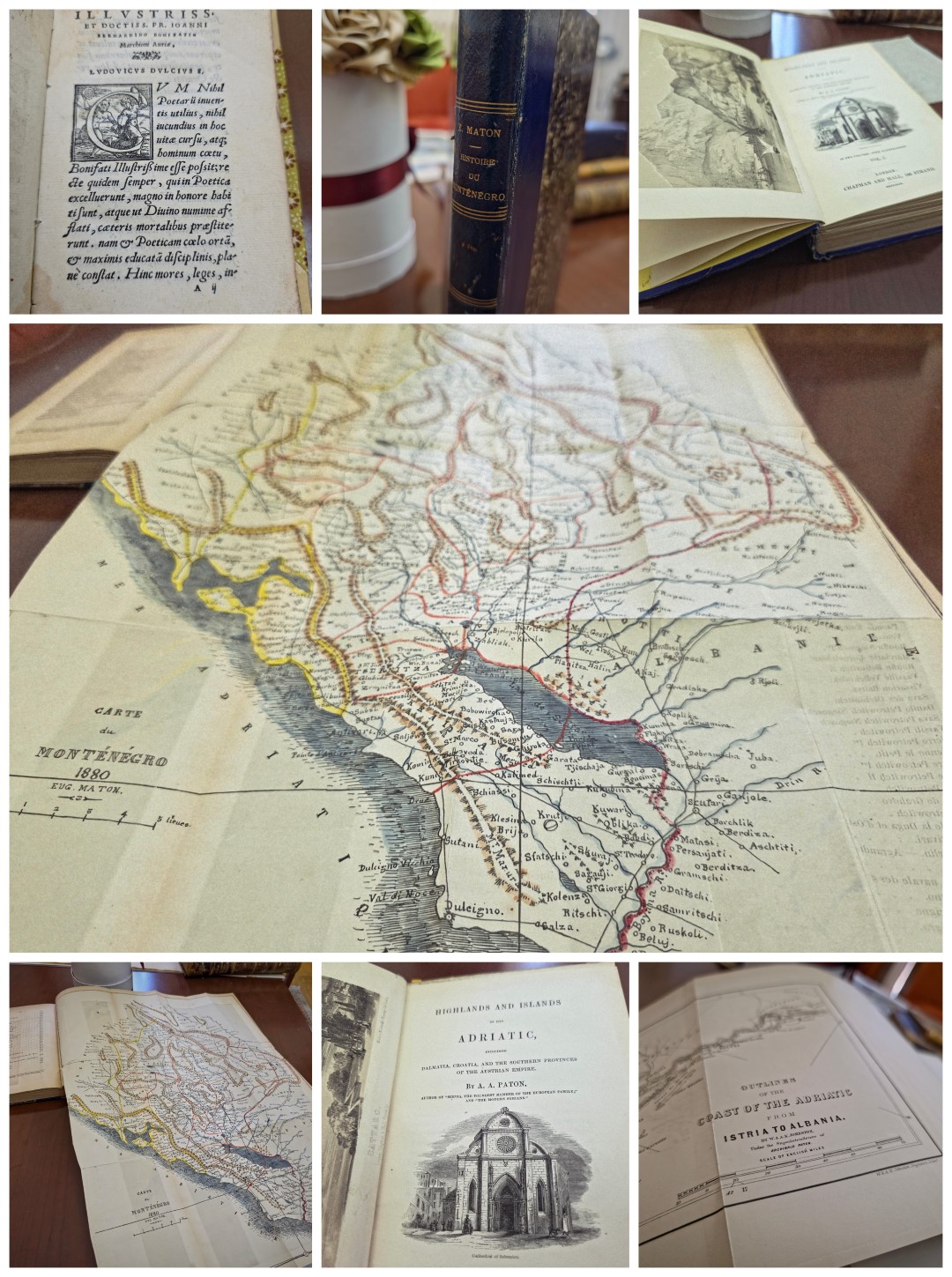 There are also works by Spiridon Gopčević “Makedonien und Alt-Serbien”, with 8 extremely valuable geographical maps (Vienna, 1889), “I conti di Tuhelj” by Josip Đelčić (Gjelčić) (Dubrovnik, 1890), “Highlands and Islands of the Adriatic, including Dalmatia, Croatia, and the southern provinces of the Austrian Empire”, Volume I-II, by E. Paton (London, 1849). The work contains 14 vedute (pictures) and 1 large map of the eastern coast of the Adriatic from Rijeka to Budva. The work by E. Maton “Histoire du Monténégro ou Tsernogore” (Paris, 1881), which also contains a wonderful geographical map of Montenegro (Carte du Monténégro 1880), belongs to the rare editions. Maton dedicated this work to the Montenegrin prince Nikola: "Dédié a son altesse le prince Nikita Petrowitch, souverain du Monténégro".