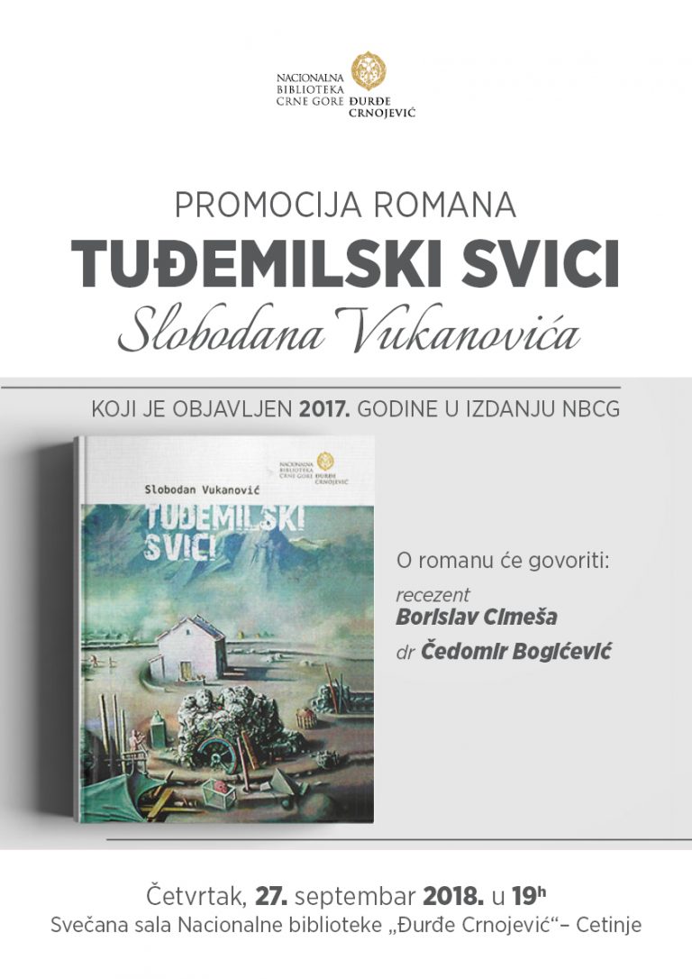 Promotion of the novel “Tuđemilski svici” by Slobodan Vukanović will be held at the National Library “Đurđe Crnojević” in Cetinje on Thursday, September 27, starting at 7pm.