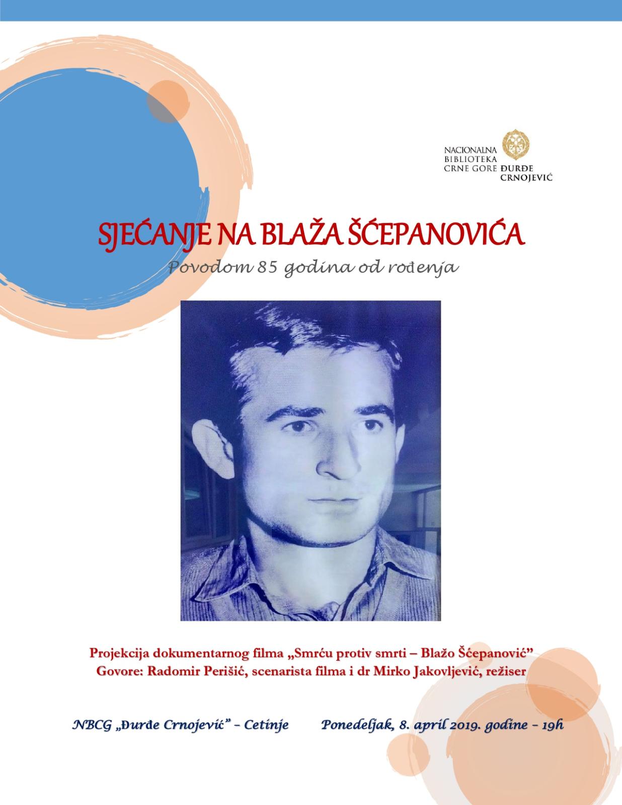 The documentary “Smrt protiv smrti - Blažo Šćepanović” will be shown within this event. The script was written by Radomir Perišić, a journalist and publicist, while the director was Dr. Mirko Jakovljević. After the screening, they will give a talk about Šćepanović.
