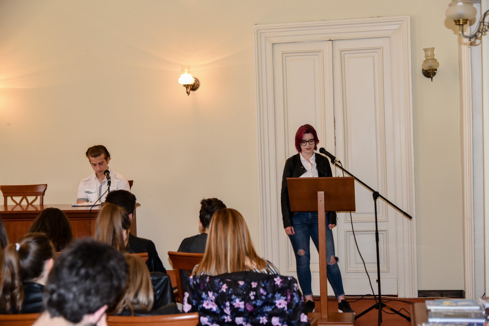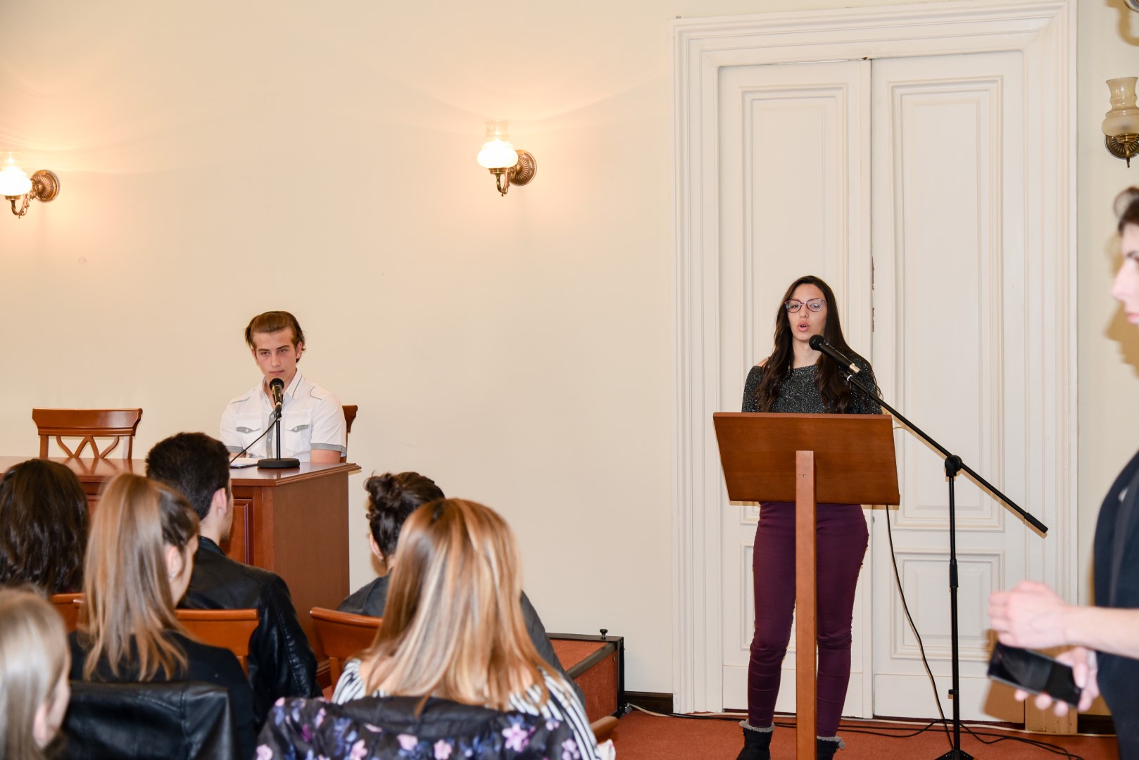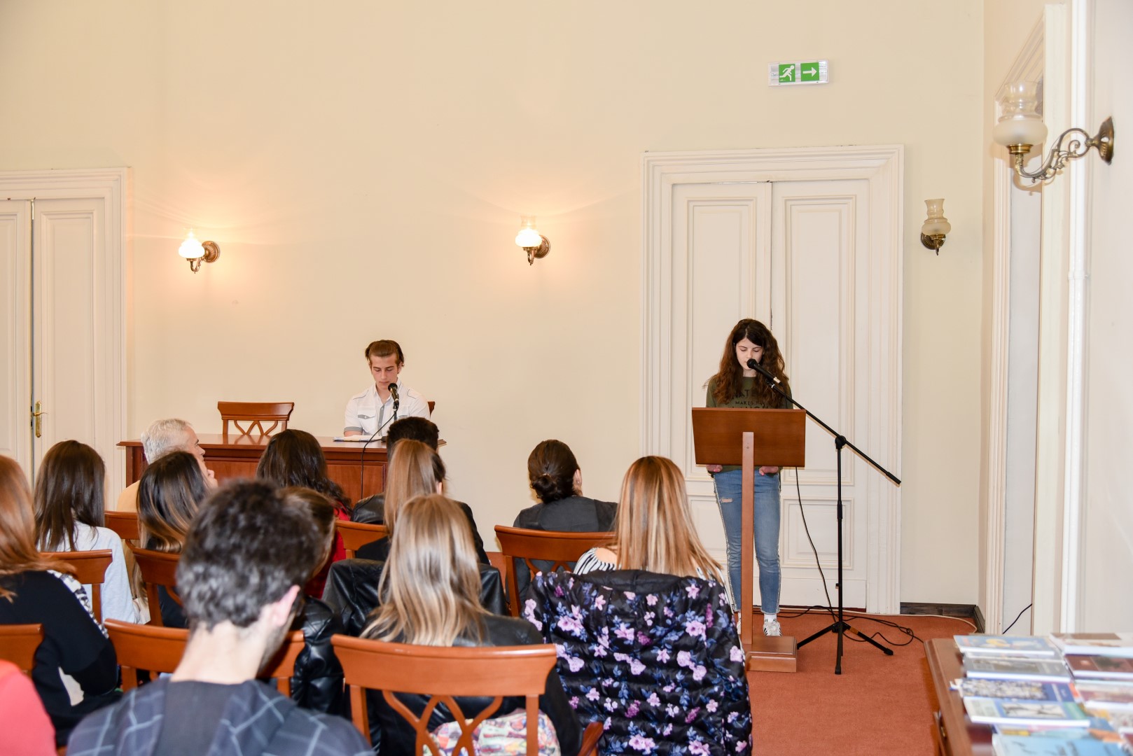 Jovana Marković, student of the first grade with Olivera Mašanović’s poem “Čekajući Orfeja”. Her peers, Milica Borozan with Ana Ahmatova’s poem “Dugo sam” and Nikoleta Lagator with William Shakespeare’s Sonnet CXXXIX. Snežana Kustudić, student of the third grade recited Gwendolyn Brook’s poem “When you have forgotten Sunday”, while Slavica Pajević i Vasja Mrvaljević presented themselves by reciting verses from a rich opus of Desanka Maksimović and her poems “Strepnja” and “Na buri”.