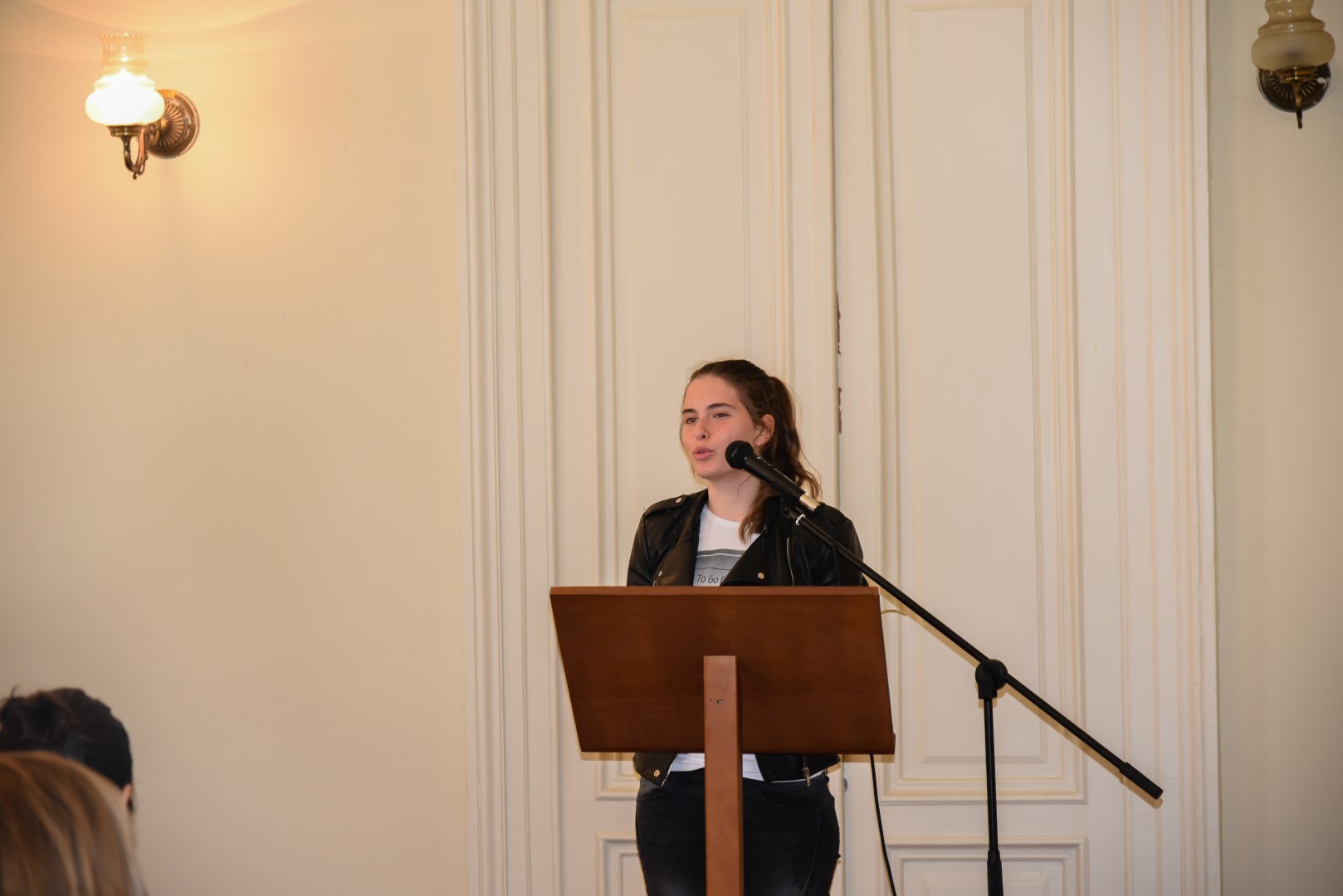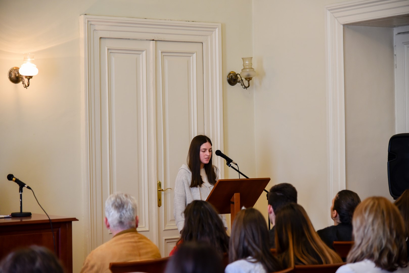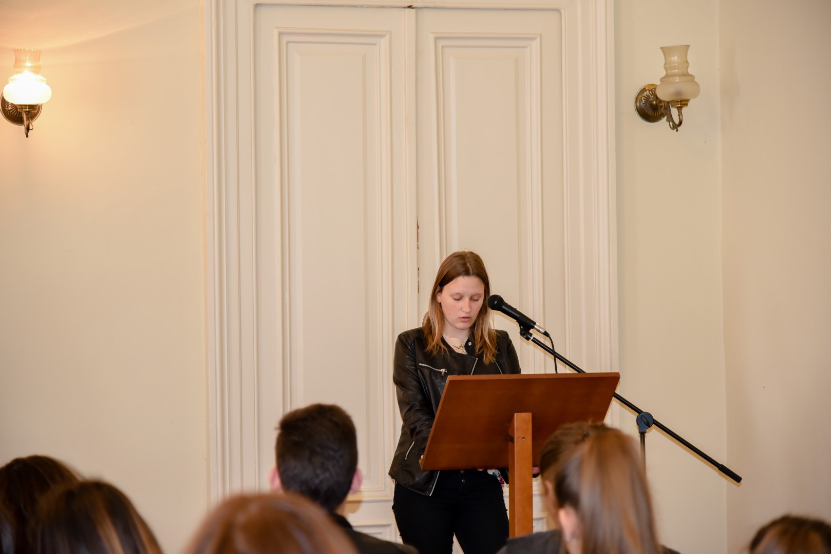 Jovana Marković, student of the first grade with Olivera Mašanović’s poem “Čekajući Orfeja”. Her peers, Milica Borozan with Ana Ahmatova’s poem “Dugo sam” and Nikoleta Lagator with William Shakespeare’s Sonnet CXXXIX. Snežana Kustudić, student of the third grade recited Gwendolyn Brook’s poem “When you have forgotten Sunday”, while Slavica Pajević i Vasja Mrvaljević presented themselves by reciting verses from a rich opus of Desanka Maksimović and her poems “Strepnja” and “Na buri”.