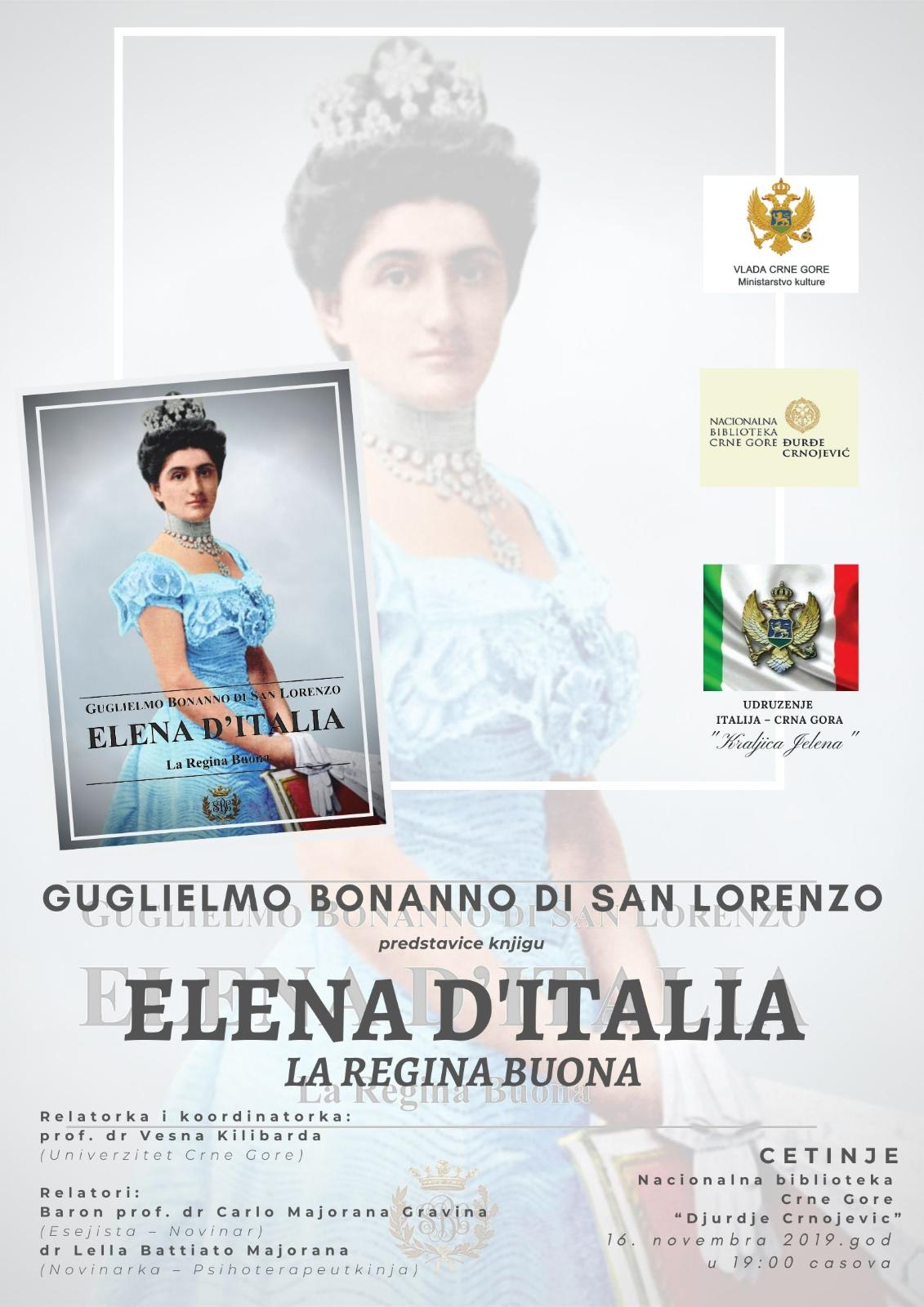 Promotion of the history book “Elena d'Italia, La Regina Buona”, written by Guglielmo Bonanno di San Lorenzo will take place at the National Library of Montenegro “Đurđe Crnojević” in Cetinje, on Saturday, November 16 at 7pm.