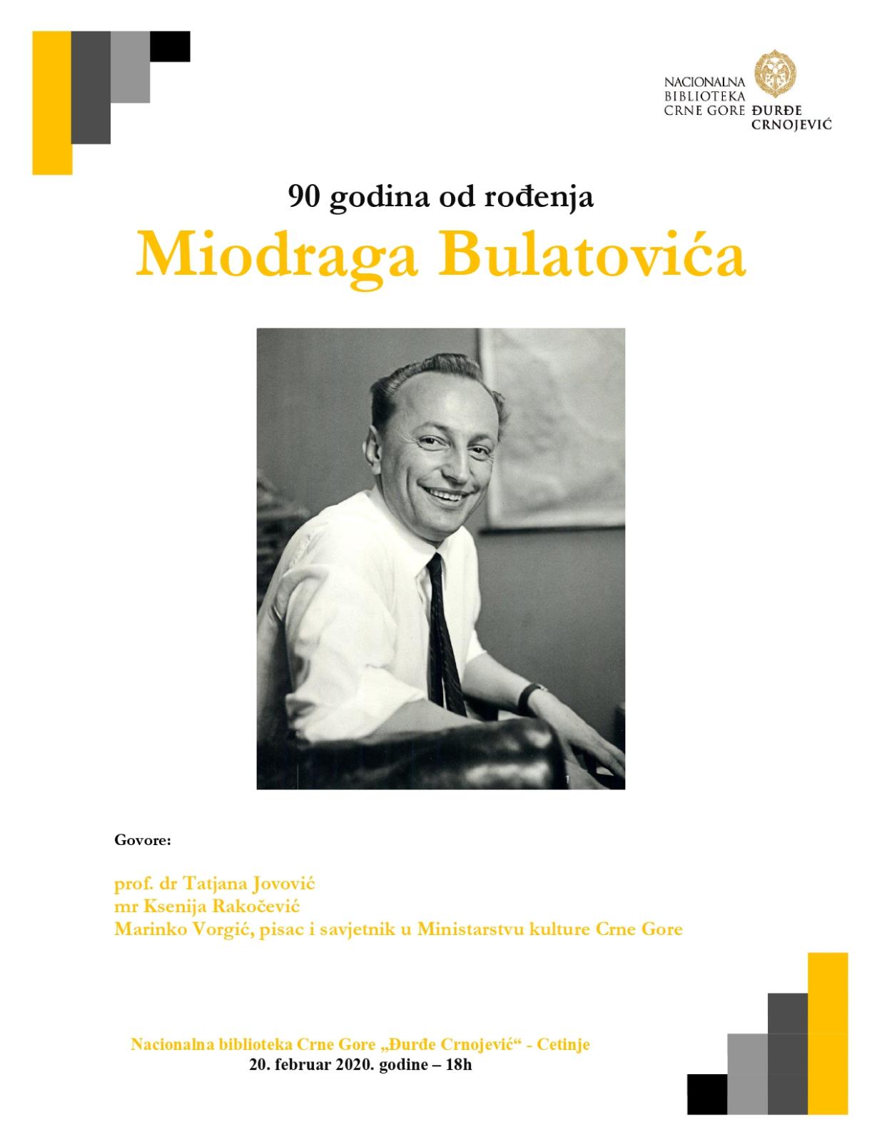National library of Montenegro “Đurđe Crnojević“ will mark 90 years since the birth of Miodrag Bulatović on Thursday, February 20.