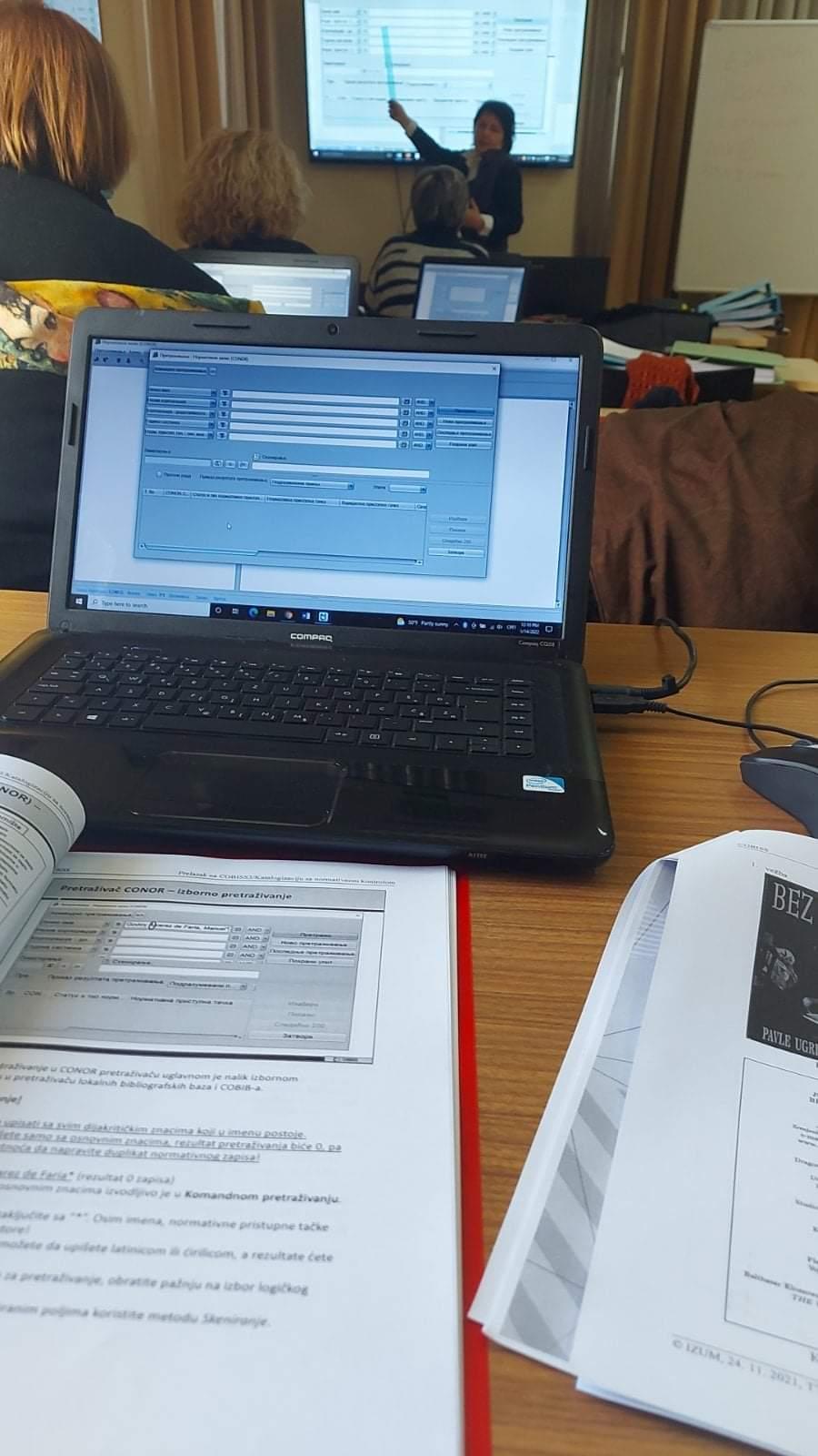 The course was attended by librarians from Montenegrin libraries who have licenses for mutual cataloguing. Ms. Martinović introduced them to cataloguing with normative control and to the possibility of choosing an individual approach in working with normative records, as well as connecting links in bibliographic records with CONOR records, and the COMARC/A manual - i.e. format for normative records.