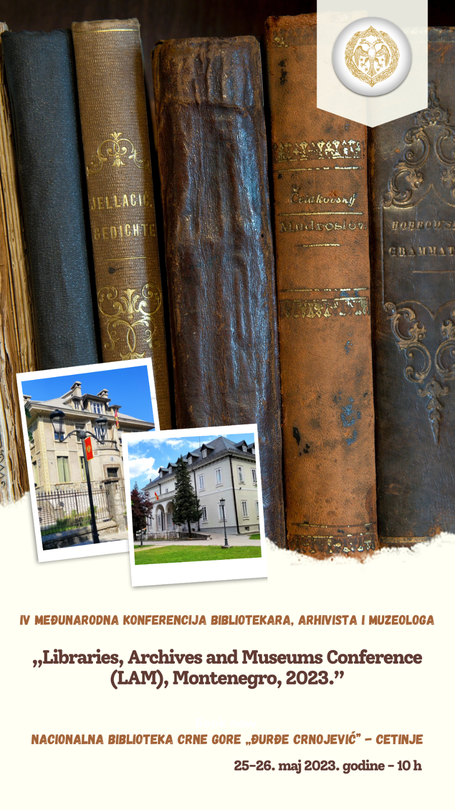 Fourth International „Libraries, Archives and Museums Conference (LAM), Montenegro, 2023“ will take place on May 25th and 26th in the National Library of Montenegro “Đurđe Crnojević” in Cetinje, starting at 10 am.