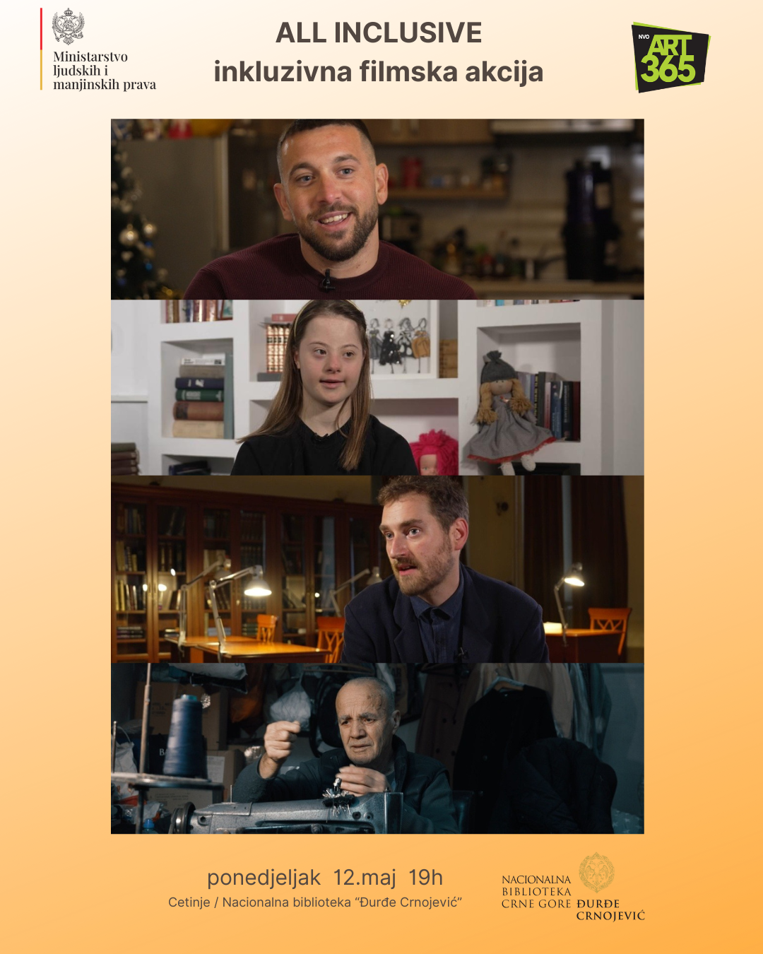Nevladino udruženje Art 365, uz podršku Ministarstva ljudskih i manjinskih prava Crne Gore, realizuje projekat "All Inclusive – inkluzivna filmska akcija". Kroz trodijelni edukativni program i mentorski rad, mladi filmski autori i lice sa invaliditetom zajednički su stvorili četiri kratka dokumentarna filma koji donose snažne i autentične lične priče.