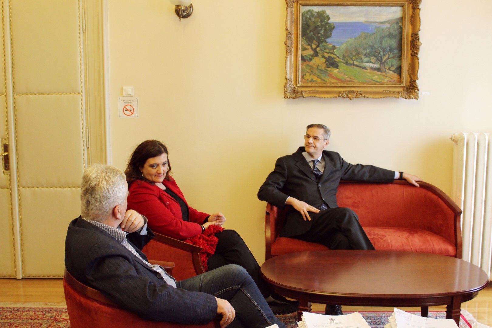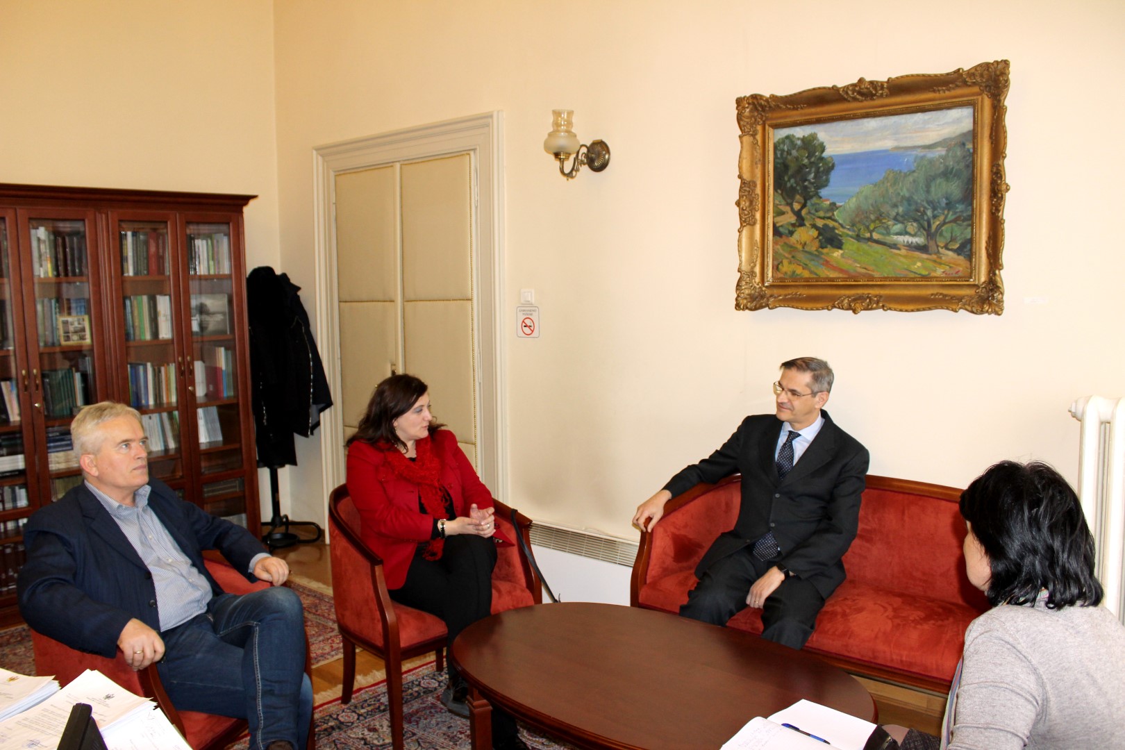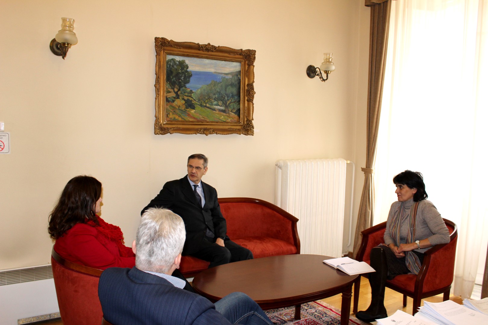 U razgovoru sa Bogićem Rakočevićem, direktorom Nacionalne biblioteke i Dragicom Lompar, pomoćnicom direktora za redovne djelatnosti, gospodin Zelioli izrazio je zadovoljstvo što je u prilici da obiđe zgradu bivšeg Italijanskog poslanstva u kojoj je sada smještena Biblioteka i upozna se sa radom naše ustanove.