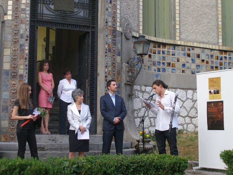 U okviru programa koji su otvorili direktorka Nacionalne biblioteke Jelena Đurović i gradonačelnik Prijestonice Cetinje Aleksandar Bogdanović, poemu Noć skuplja vijeka na engleskom jeziku i odlomke iz Gorskog vijenca na španskom jeziku recitovao je glumac Vuk Čelebić.
