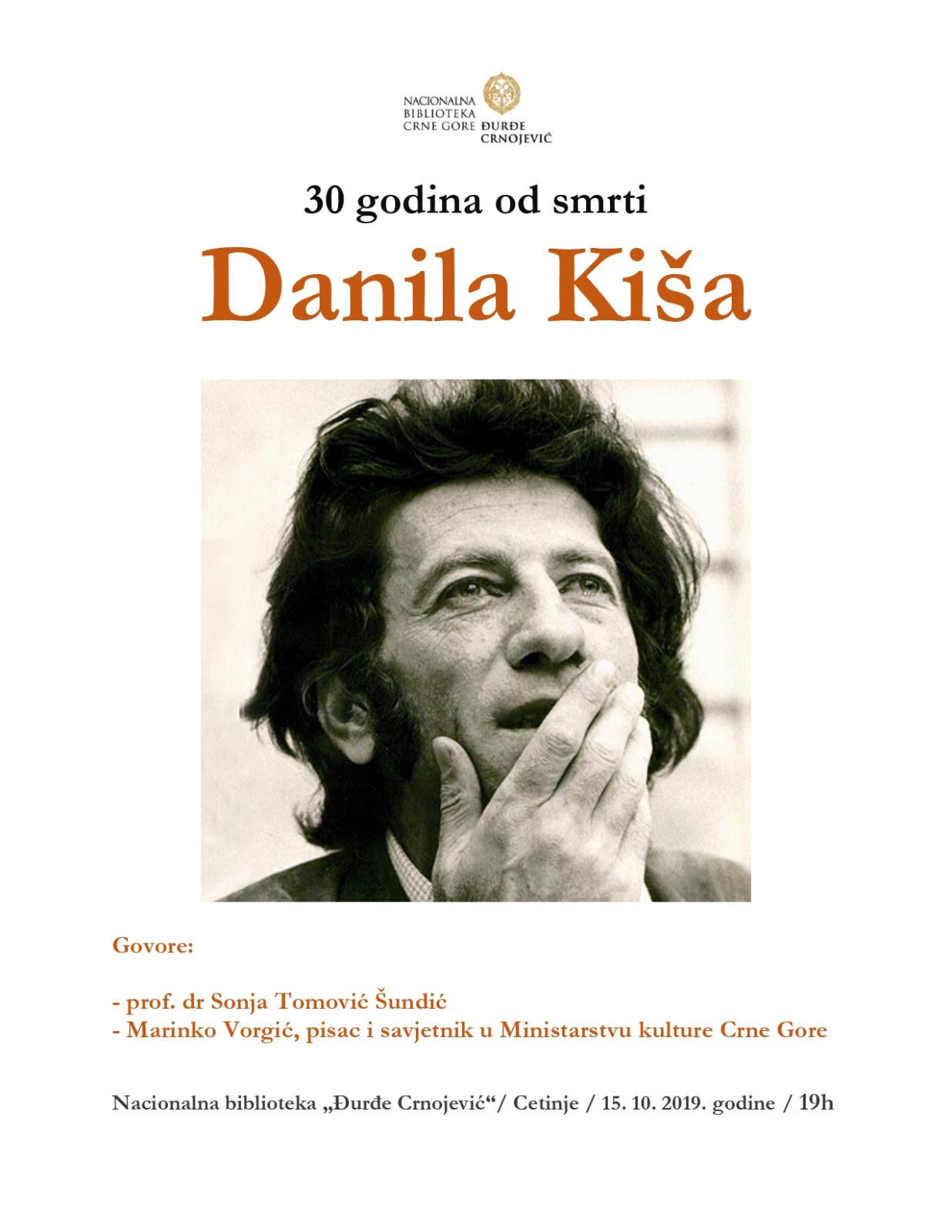 Književno veče povodom 30 godina od smrti Danila Kiša biće održano u utorak, 15. oktobra, u Nacionalnoj biblioteci Crne Gore „Đurđe Crnojević“ na Cetinju.