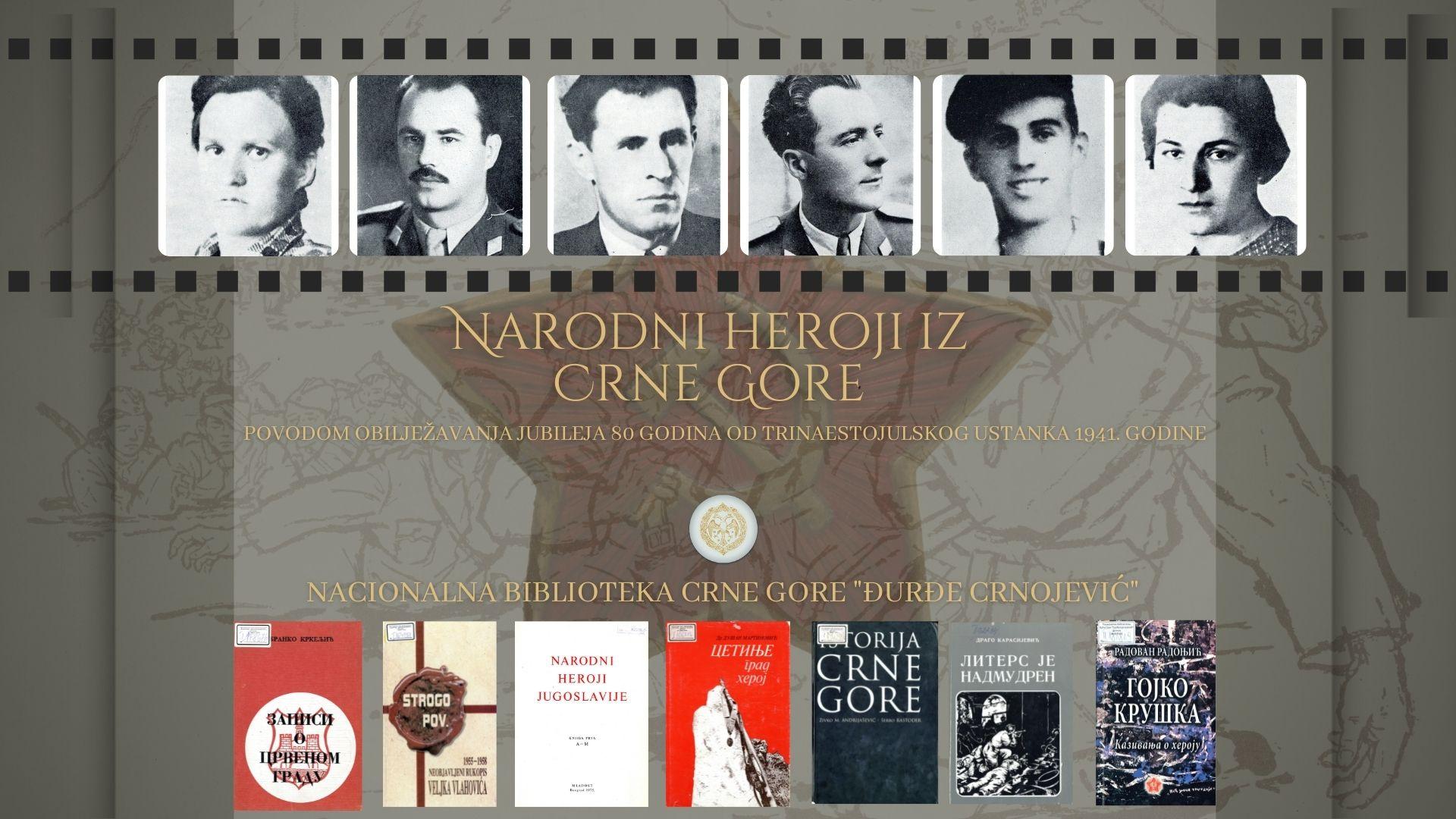 U čast obilježavanja 80 godina od Trinaestojulskog ustanka, Nacionalna biblioteka “Đurđe Crnojević” video projekcijom podsjeća na imena 244 narodna heroja iz Crne Gore koji su “voljeli slobodu više od života”. Projekcija se može pogledati na portalu www.nb-cg.me, kao i na zvaničnim stranicama društvenih mreža Biblioteke: facebook https://www.facebook.com/nacionalnabibliotekacg , instagram https://www.instagram.com/nacionalna_biblioteka_cg i youtube https://www.youtube.com/channel/UCYRdX0JWuofg-S7aBCif-1Q/videos.