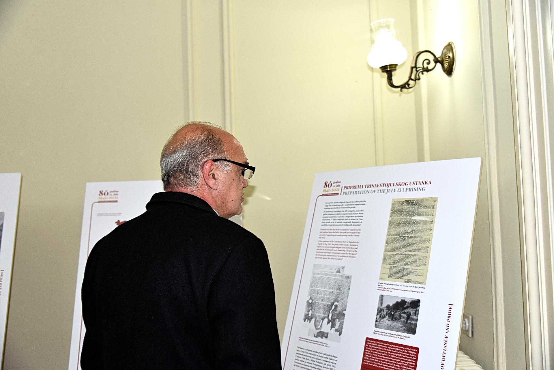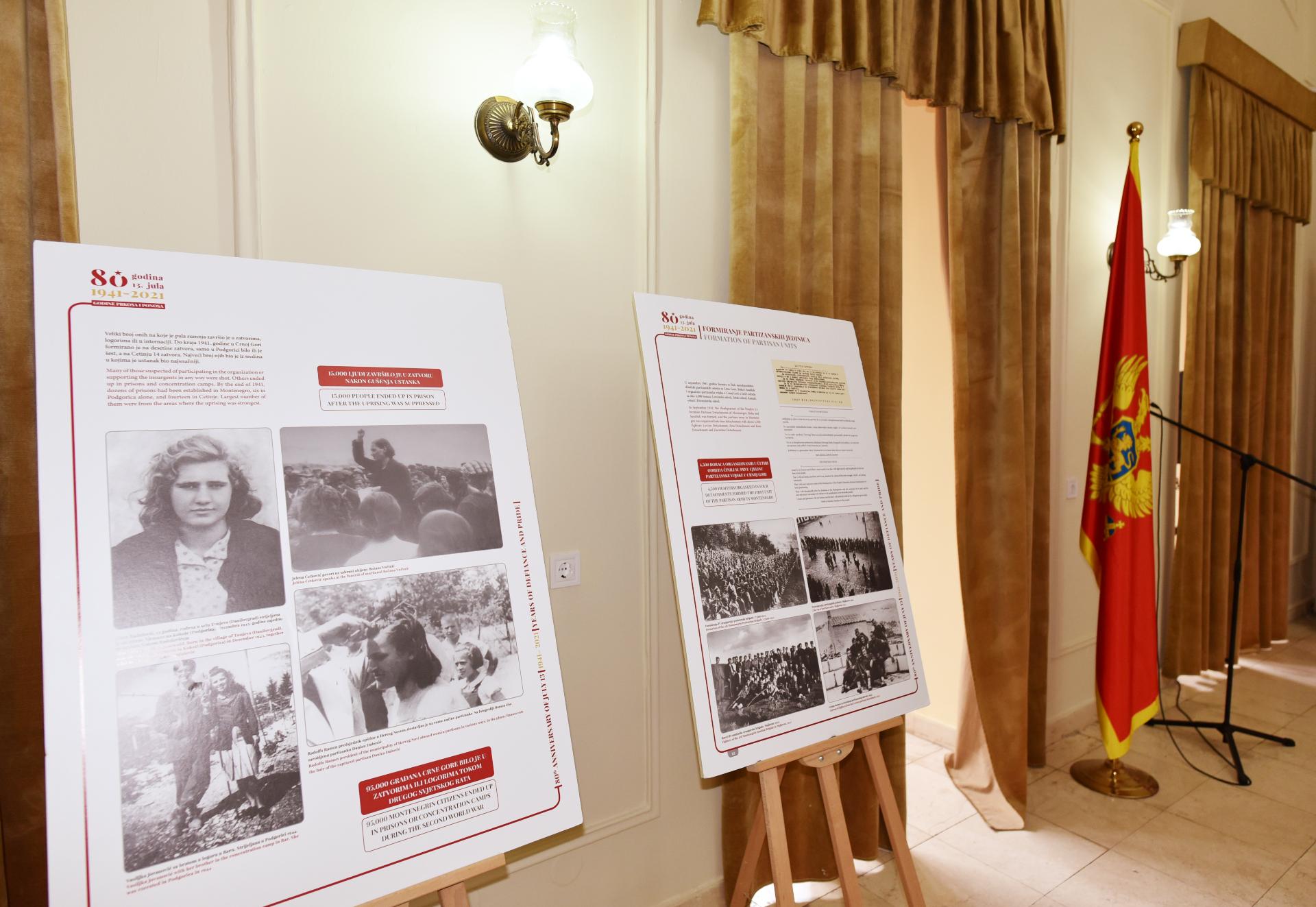 Na otvaranju izložbe, koju čine dvadeset dva ilustrovana panoa sa fotografijama i dokumentima iz perioda pripreme ustanka i događanja nakon toga, su govorili: Dragan Radulović, predsjednik Matice crnogorske i Danilo Ivezić, predsjednik Nacionalne zajednice Crnogoraca Hrvatske.