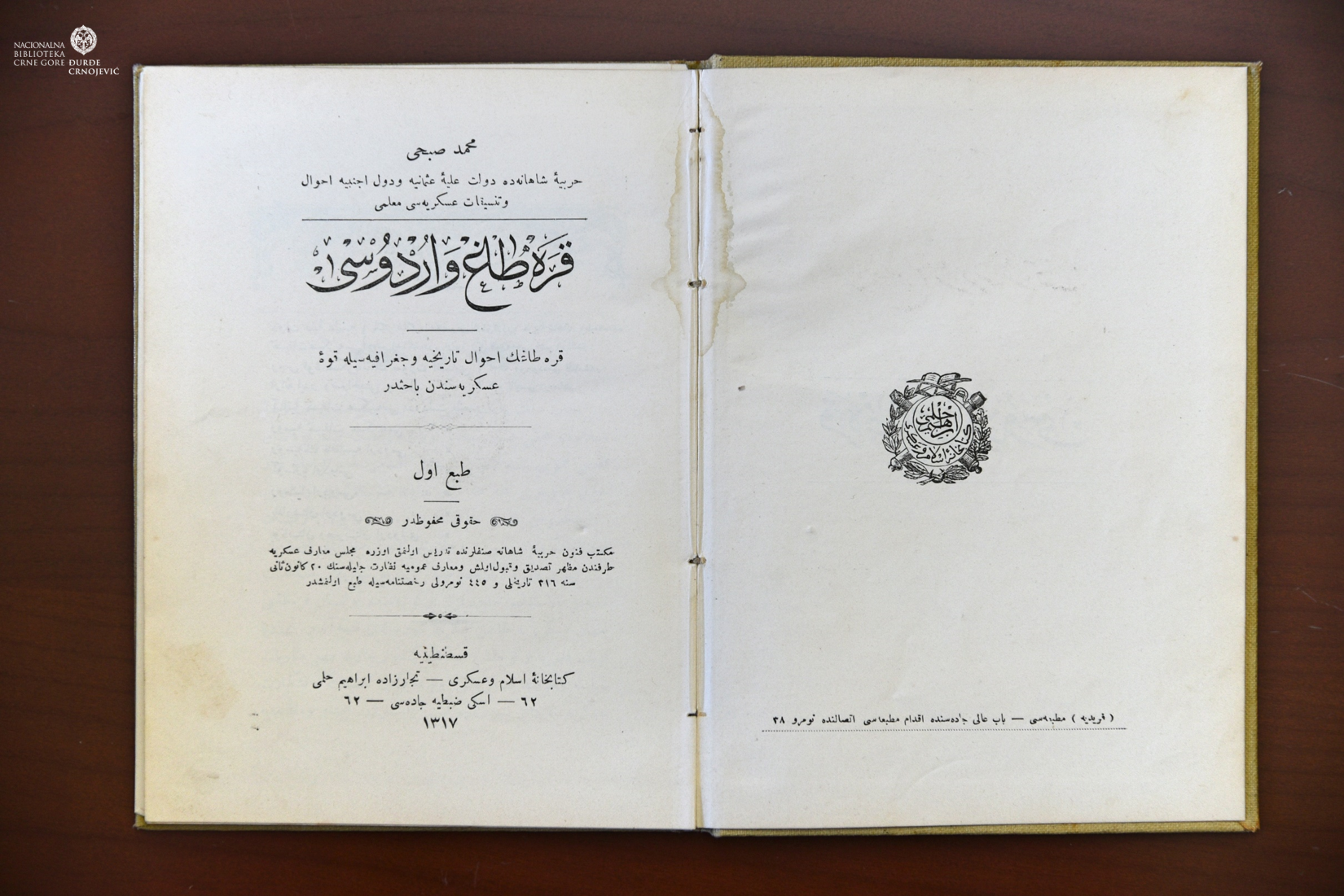 NBCG “ĐURĐE CRNOJEVIĆ” je nedavno otkupila publikaciju: KARADAG VE ORDUSU: KARADAG'IN AHVÂL-I TÂRIHIYYE VE COGRÂFIYYESIYLE KÛVVE-I ASKERIYYESINDEN BAHISDIR = [Crnogorska vojska: Istorija, geografija i vojna sila Crne Gore], autora Mehmeda Subhija, objavljenu u Istanbulu 1901. godine.