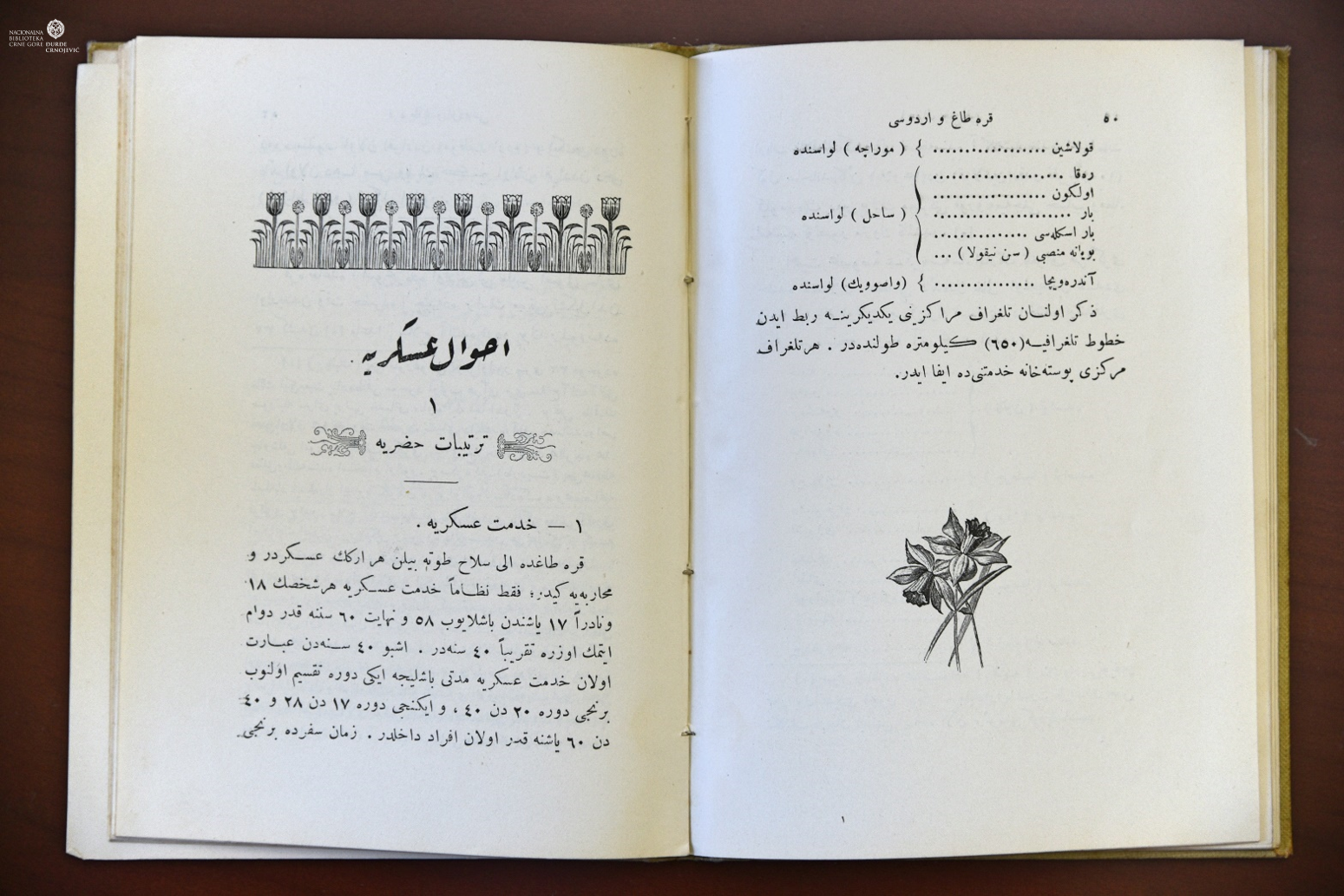 U pitanju je prvo i jedino izdanje ove neobično rijetke knjige o strukturi i organizaciji crnogorske vojske, namijenjene za nastavu u osmanskim vojnim školama početkom 20. vijeka.