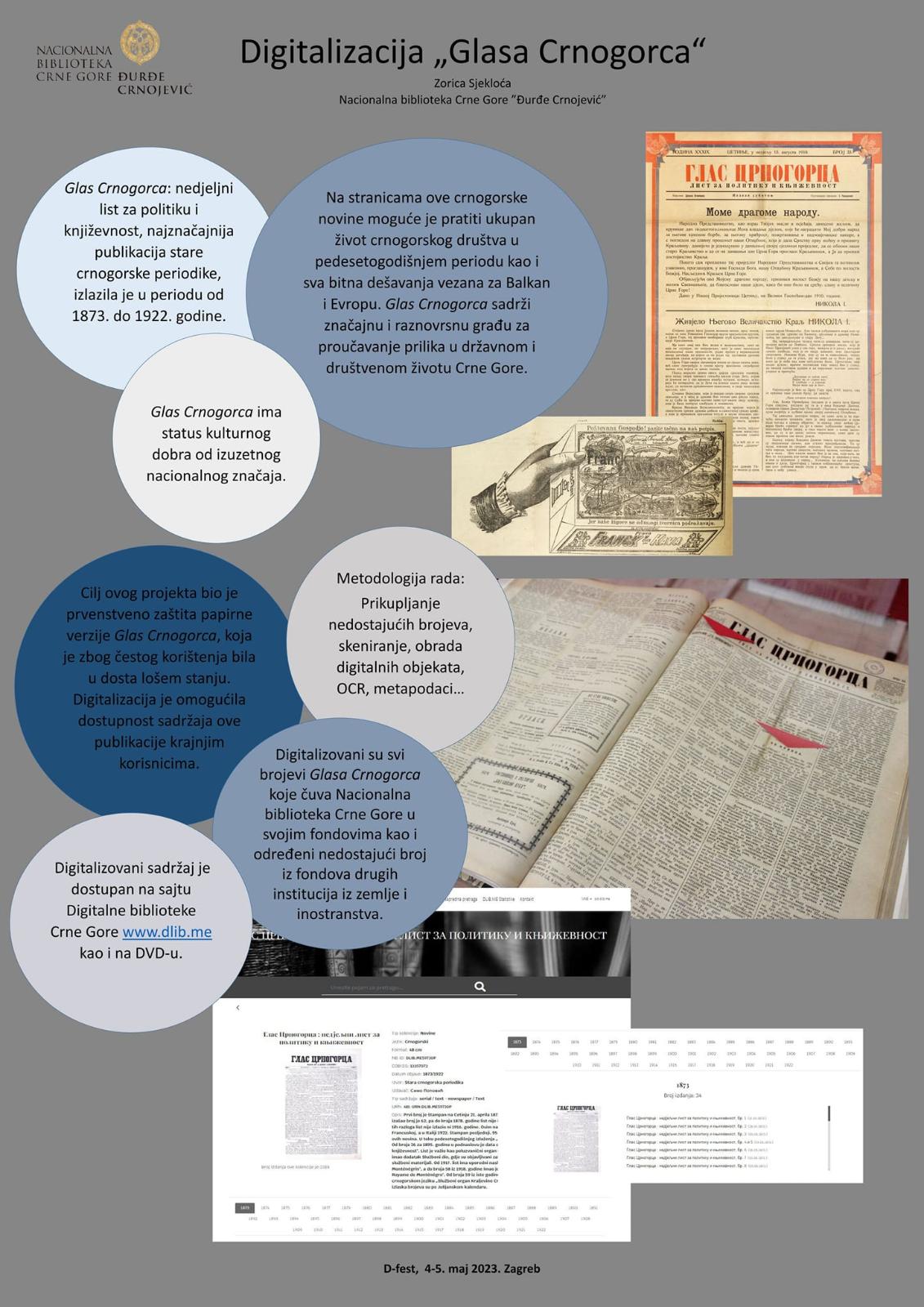 Zorica Sjekloća, bibliotekarka savjetnica u Nacionalnoj biblioteci Crne Gore „Đurđe Crnojević” uzela je učešće u događaju, a tema njenog izlaganja bila je: Digitalizacija „Glasa Crnogorca”.