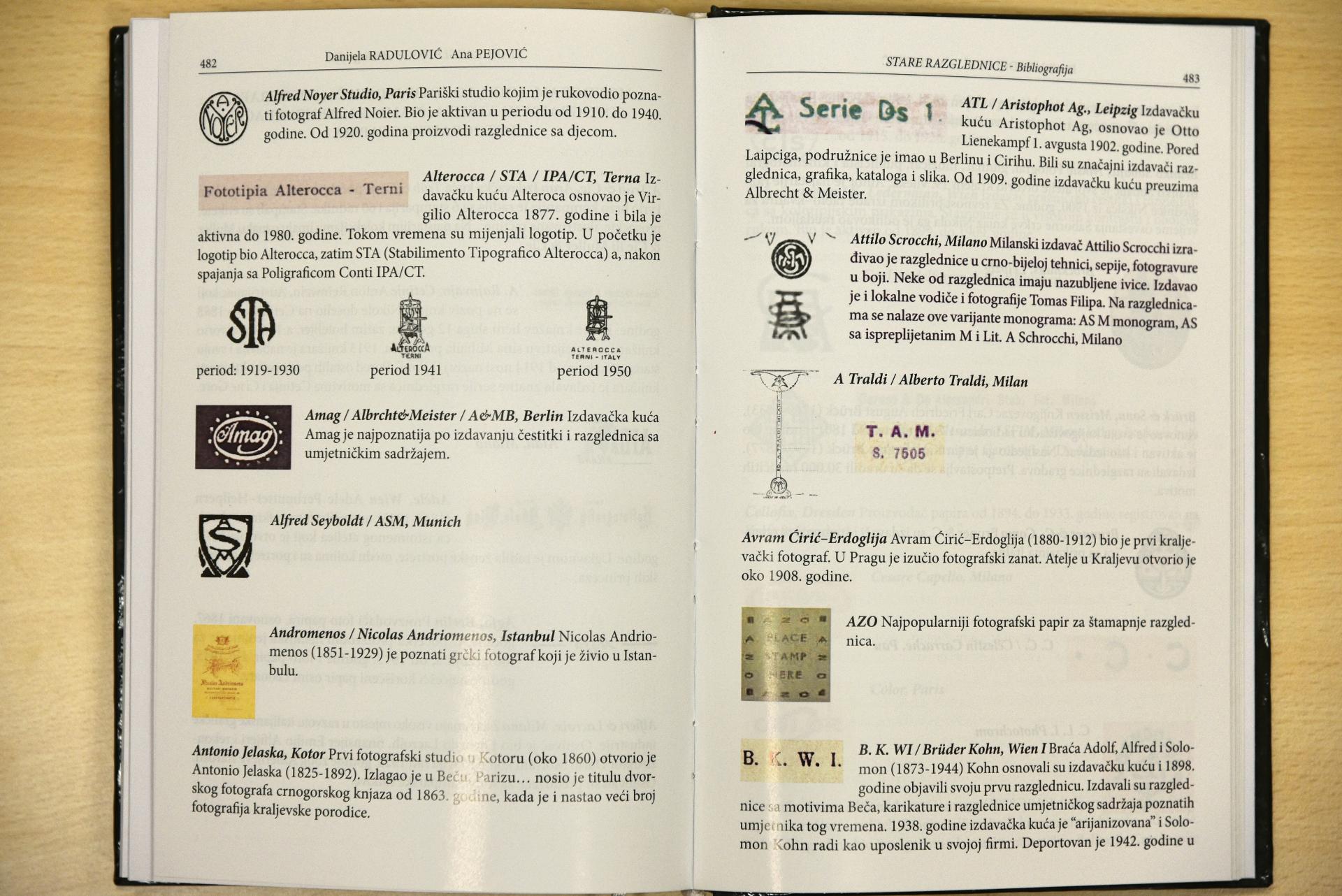 fotografima, ateljeima, knjižarimai štamparima sa njihovim monogramima.