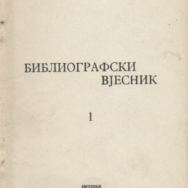BIBLIOGRAFSKI VJESNIK 20.08.2018. Serijske publikacije Cijena: 0.50€ BIBLIOGRAFSKI VJESNIK : časopis Društva bibliotekara Crne Gore i Centralne narodne biblioteke Crne Gore “Đurđe Crnojević”. Izlazi tri puta godišnje. God. I–IV : 1961–1964. God. V–XXXVII : 1976–2016.ISSN 0409 – 3739 Poruči Podijeli  Katalog izdanja Fototipska izdanjaPosebna izdanjaBibliografijaBio-bibliografijaSerijske publikacijeKataloziPriručnici Događaji U SPOMEN KUĆI VOJVODE GAVRA VUKOVIĆA 27.11.2025.. GODINE OTVORENA JE IZLOŽBA „STRANCI O CRNOJ GORI“ 01.12.2025. PROMOCIJU KNJIGE „ DIVAN II : ALHEMIJA RIJEČI I DJELA” SAFETA HADROVIĆA VRBIČKOG 01.12.2025. SUSRET NA RUBU RAZUMA 01.12.2025.