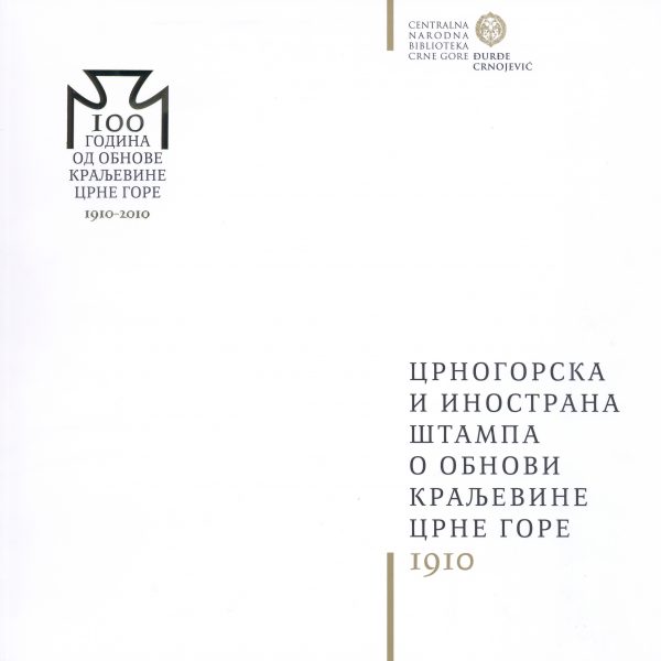 Đurović, Jelena ; Lompar, Dragica : CRNOGORSKA I INOSTRANA ŠTAMPA O OBNOVI KRALjEVINE CRNE GORE 1910 : 100 godina od obnove Kraljevine Crne Gore, 1910–2010. 2010. Urednik Jelena Đurović. Štampa DPC, Podgorica. Format 22 x 22. Strana 83 : ilustr. Tiraž 600. Broširano. Latinica